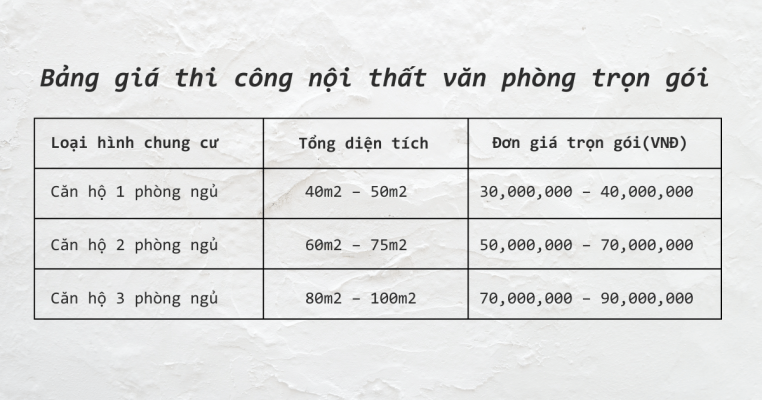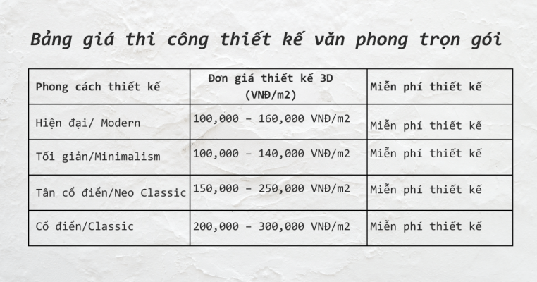 Bảng giá thi công thiết kế văn phòng